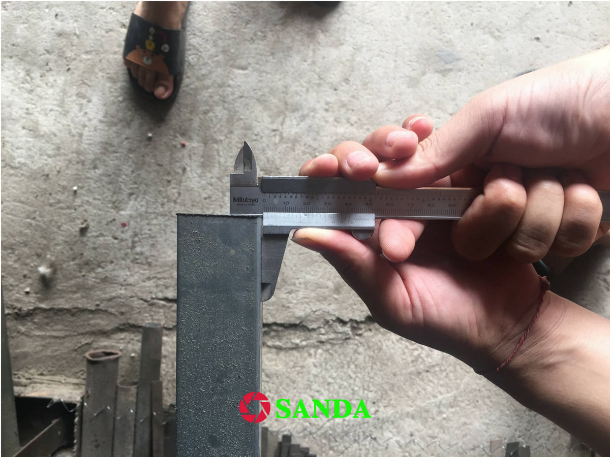 Dùng thước đo barem (độ dày, mõng) sắt thép hộp mạ kẽm 20 x 40.